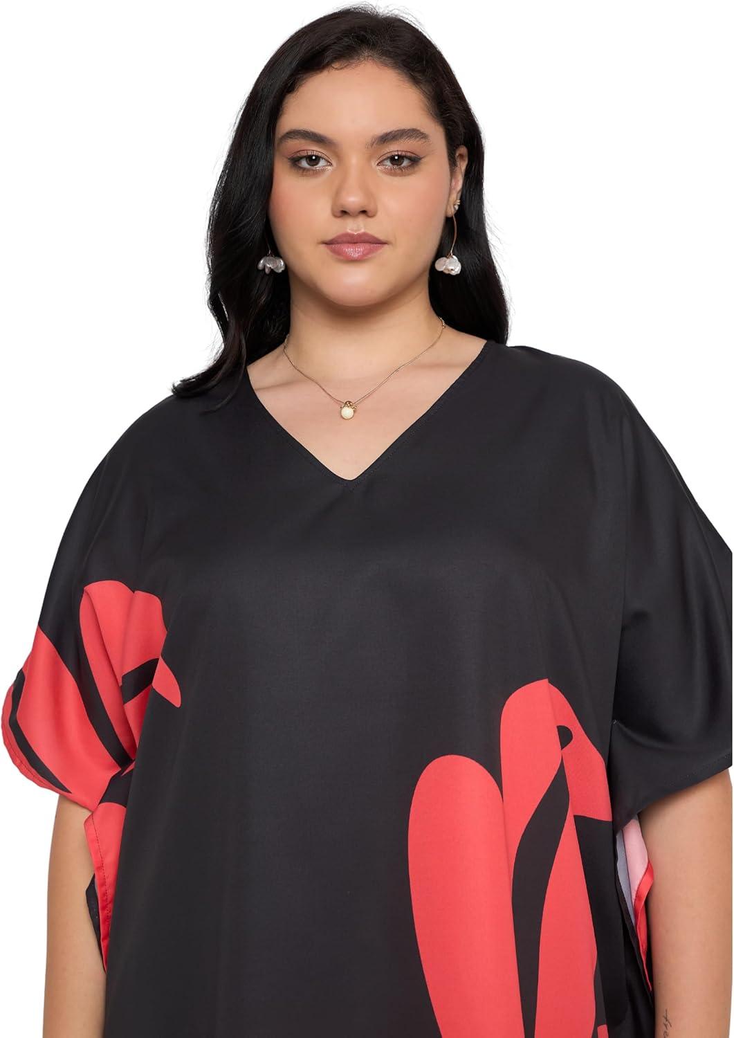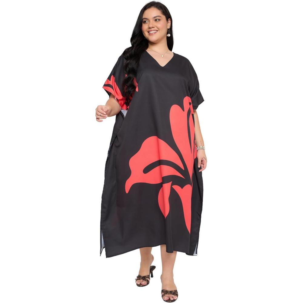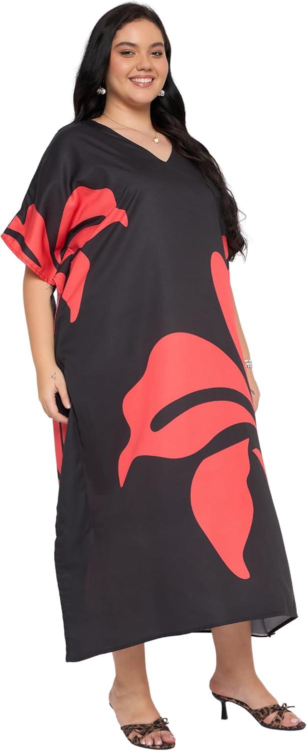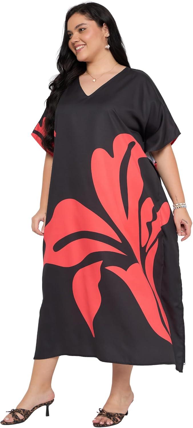 Gypsie Blu Caftan Dresses for Women Polyester Plus Size Moo Moos Bathing Suit Cover Up Kaftan BeachDress Resort Lounge Outfit(Black & Red)