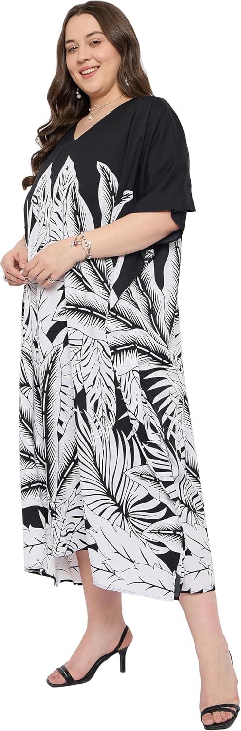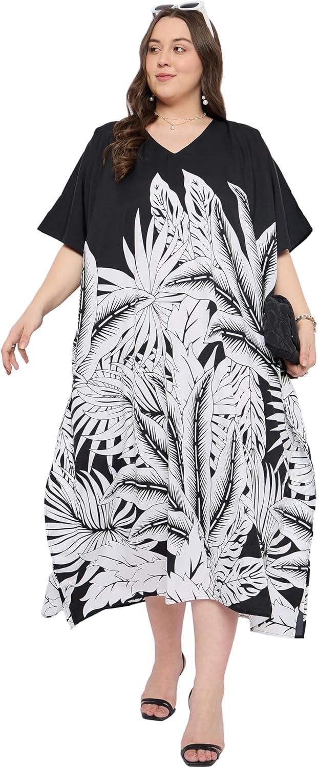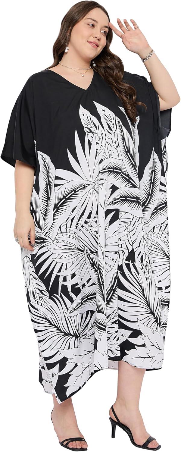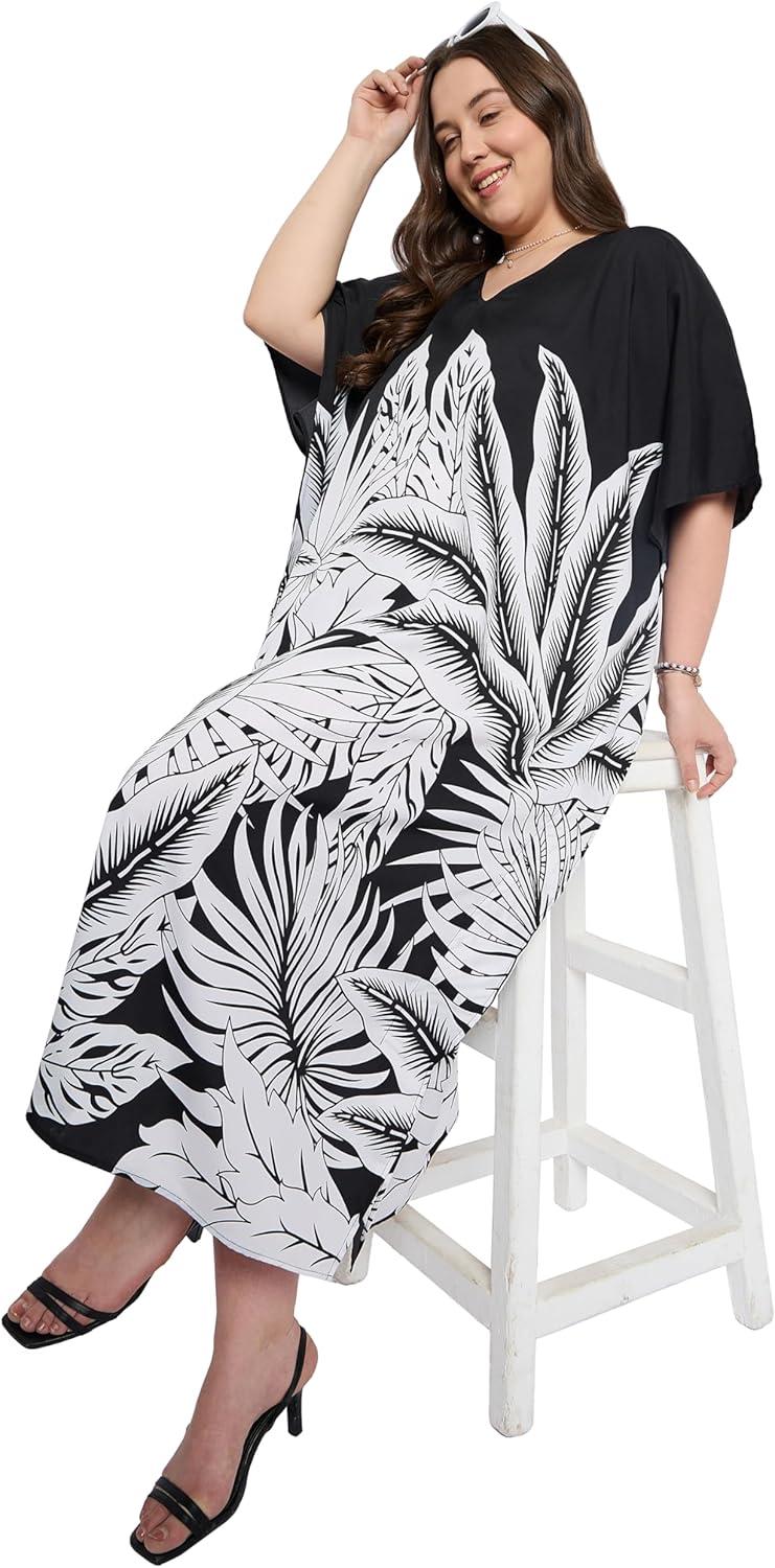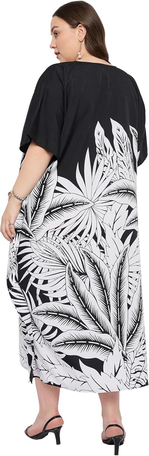 Gypsie Blu Caftan Dresses for Women Polyester Plus Size Moo Moos Bathing Suit Cover Up Kaftan BeachDress Resort Lounge Outfit(Black & White)