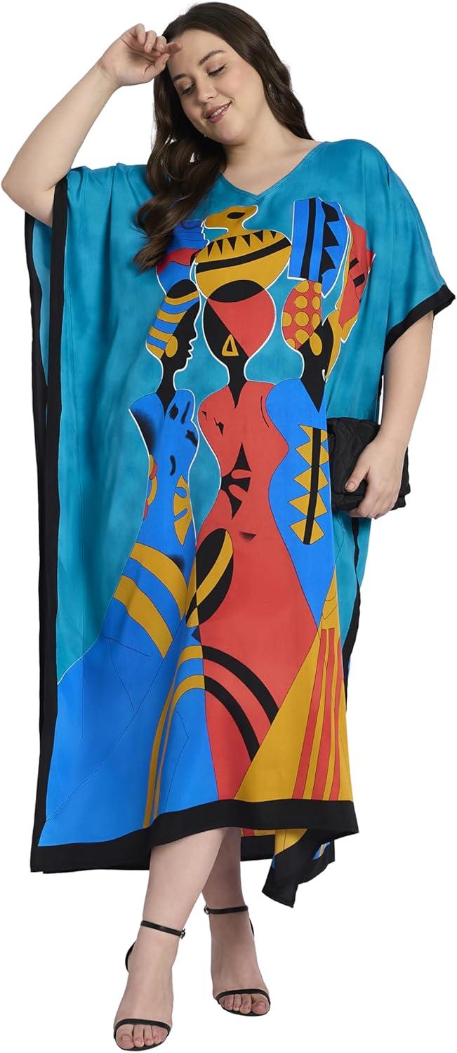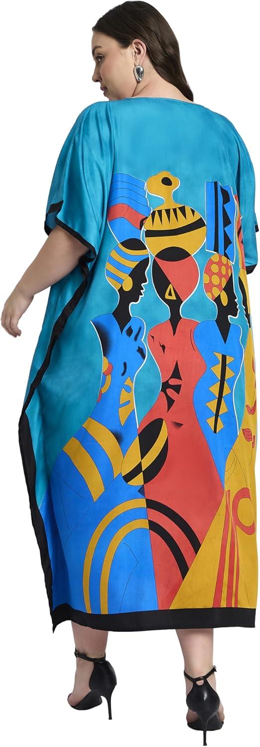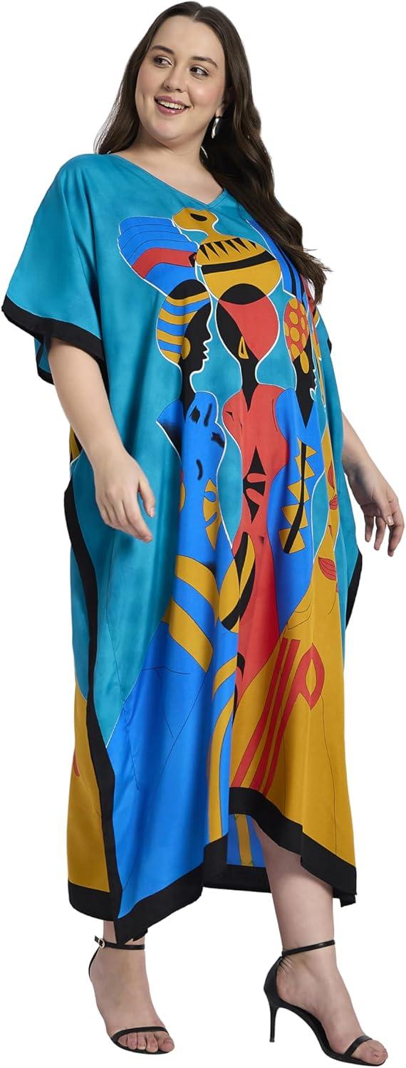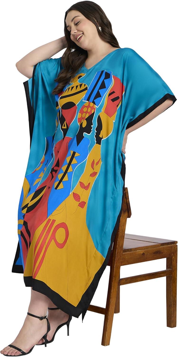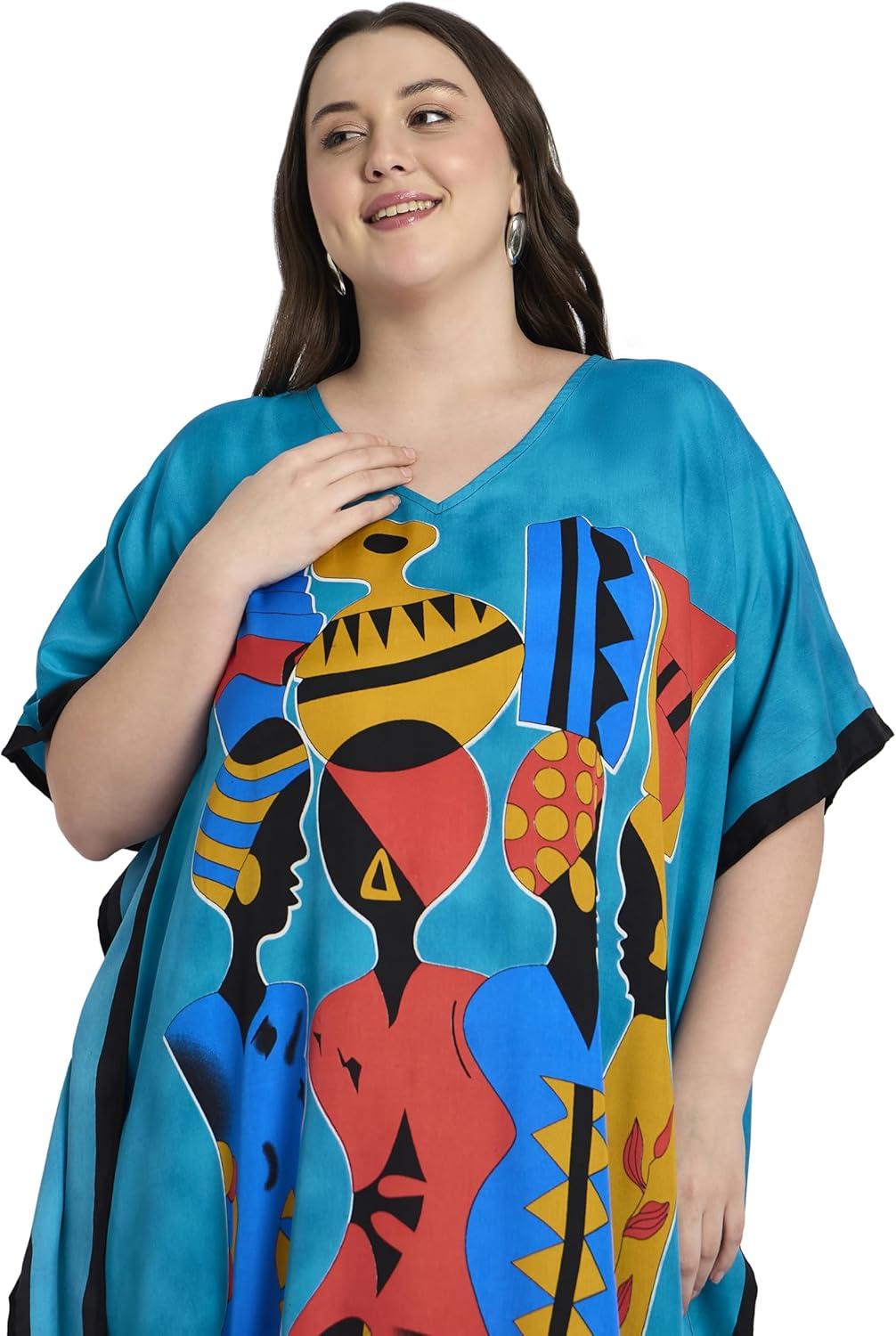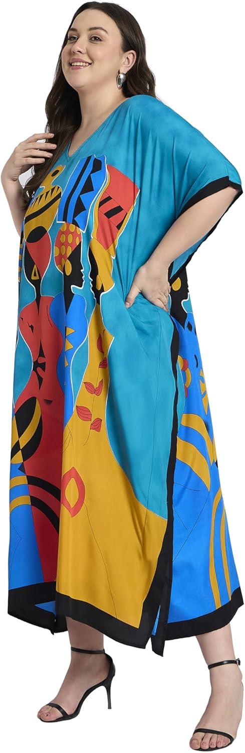 Gypsie Blu Caftan Dresses for Women Polyester Plus Size Moo Moos Bathing Suit Cover Up Kaftan BeachDress Resort Lounge Outfit(Blue)