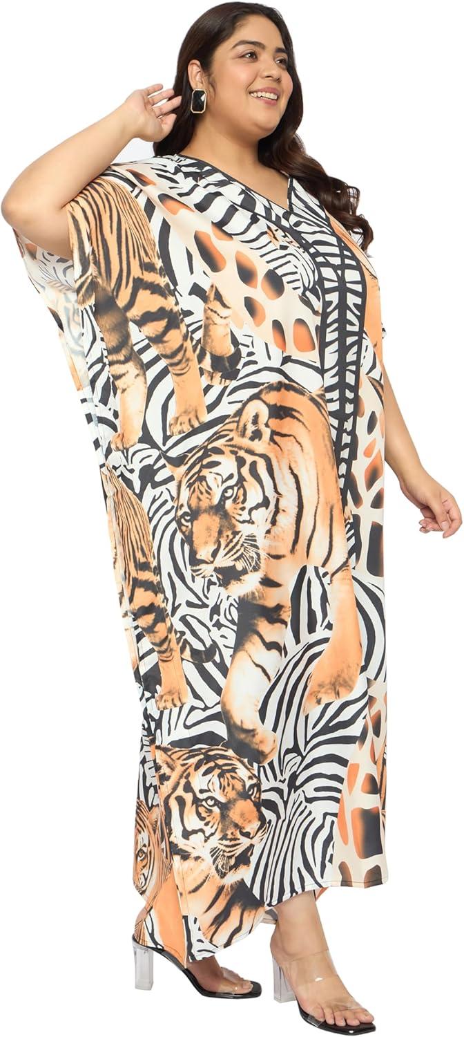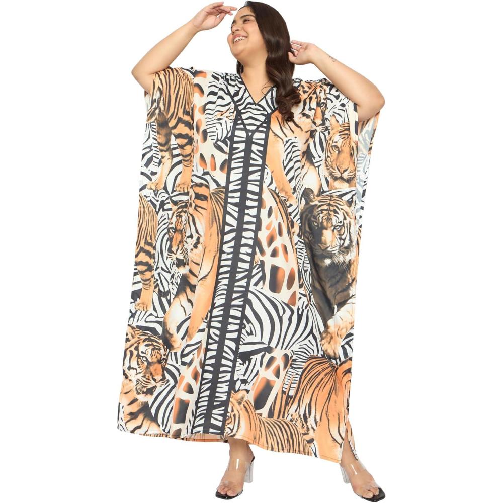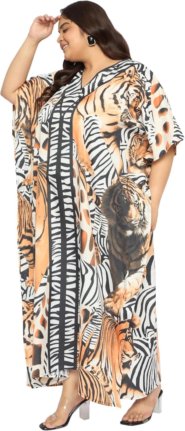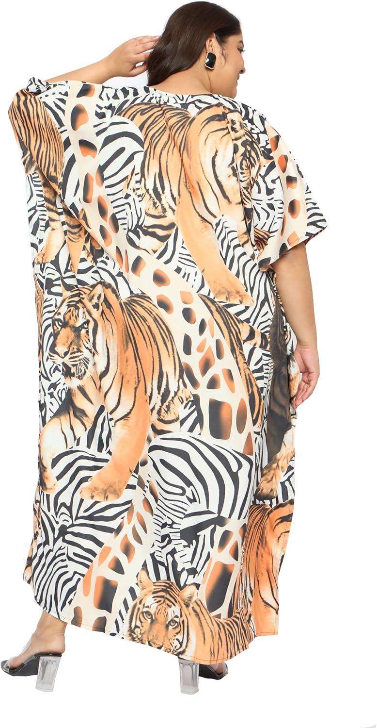 Gypsie Blu Caftan Dresses for Women Polyester Plus Size Moo Moos Bathing Suit Cover Up Kaftan BeachDress Resort Lounge Outfit(Brown Tiger)