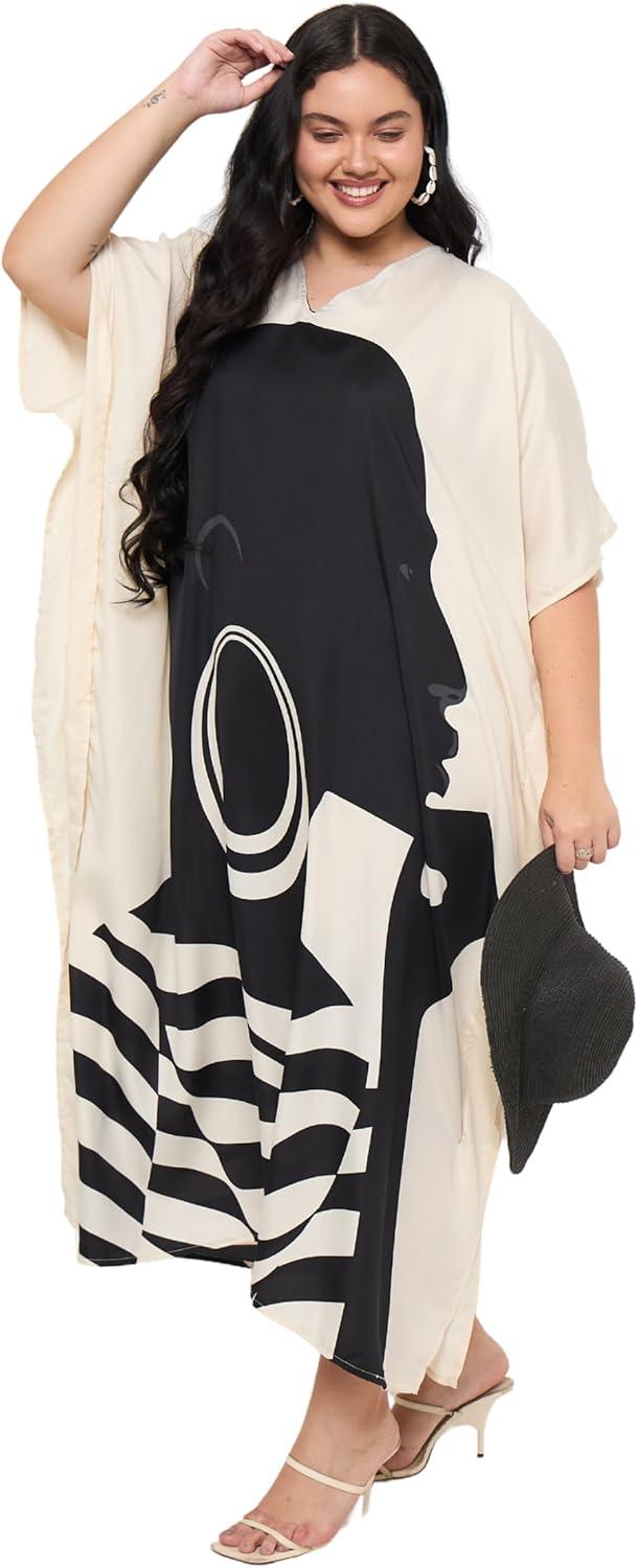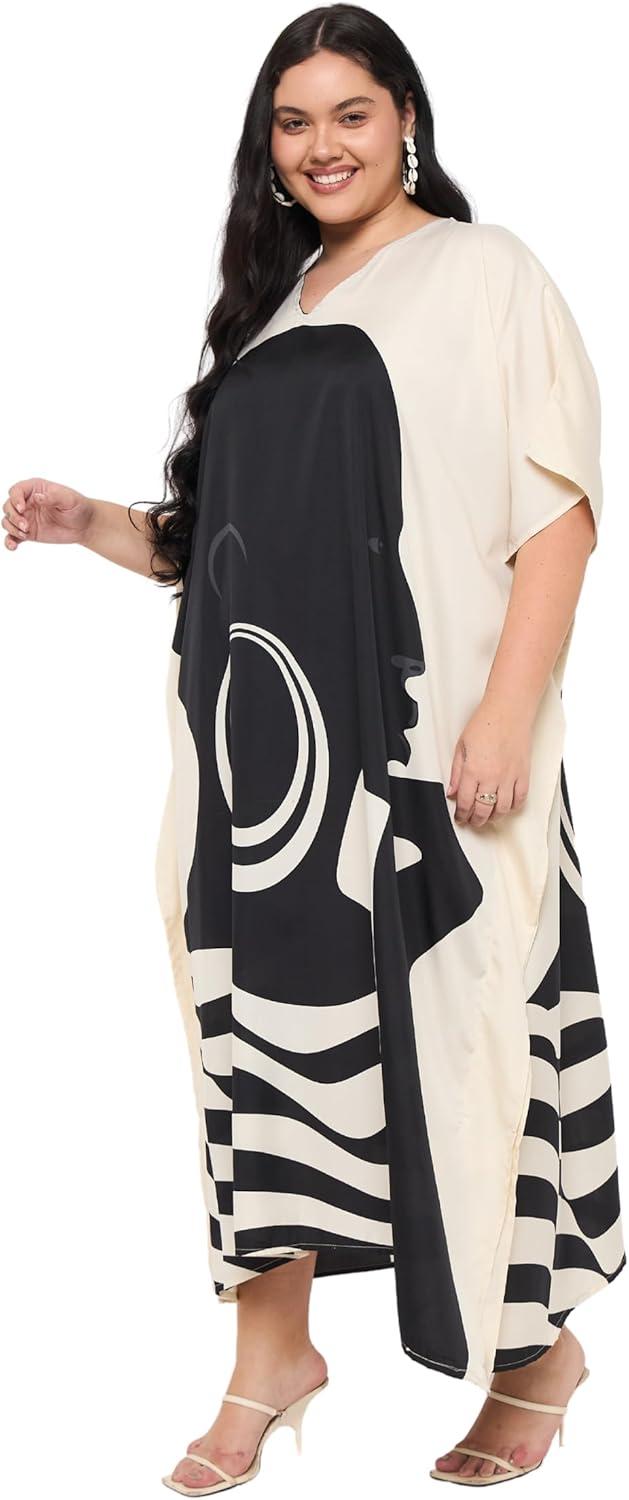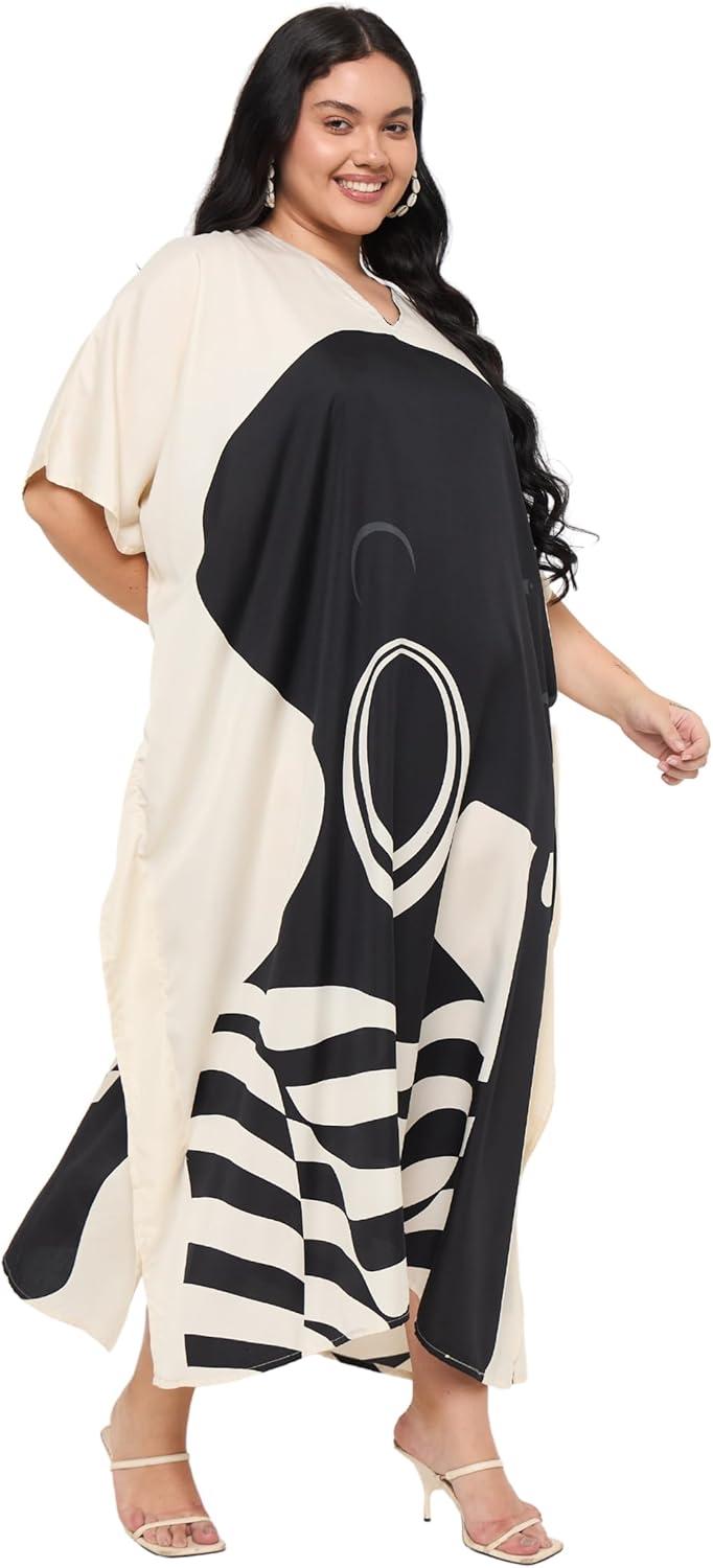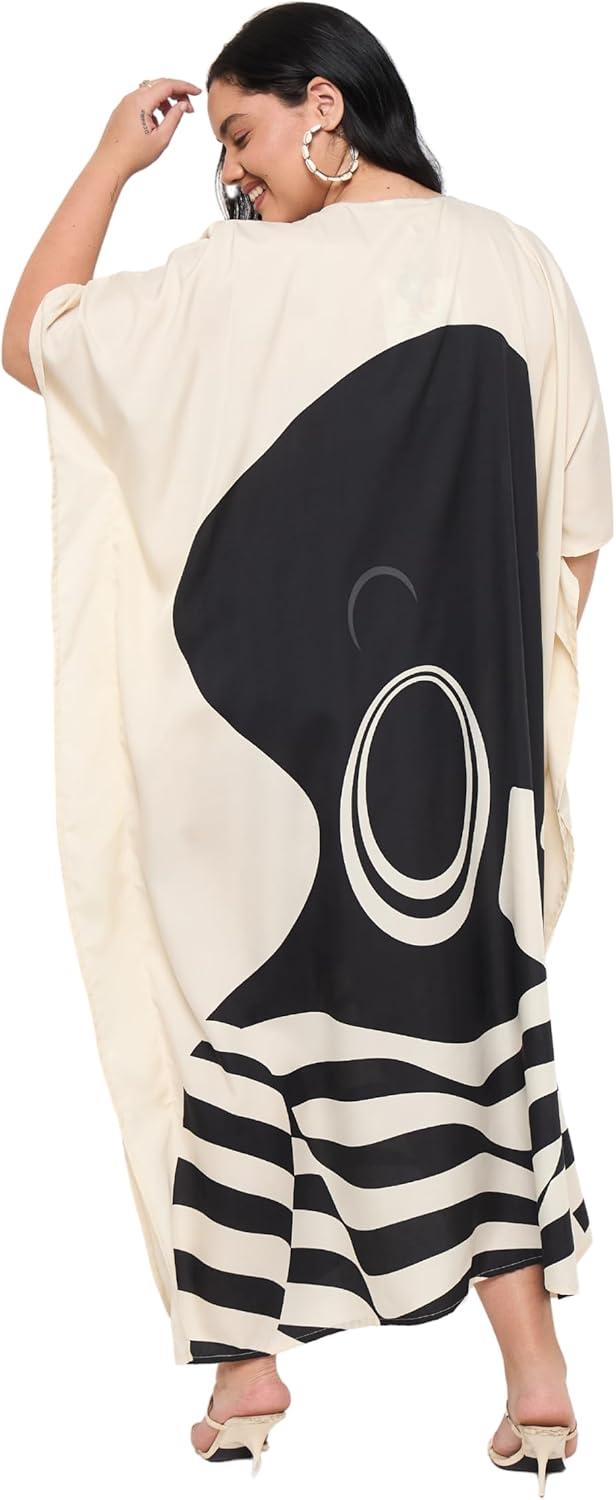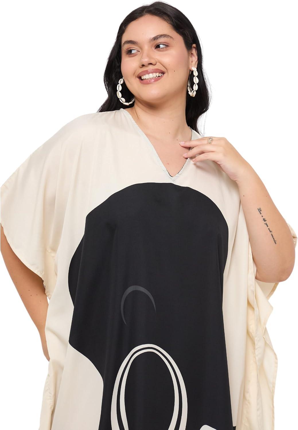 Gypsie Blu Caftan Dresses for Women Polyester Plus Size Moo Moos Bathing Suit Cover Up Kaftan BeachDress Resort Lounge Outfit(Cream & Black)