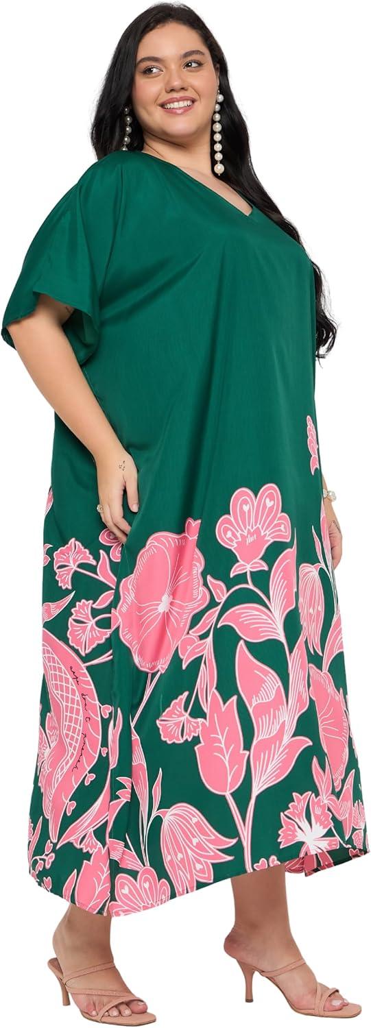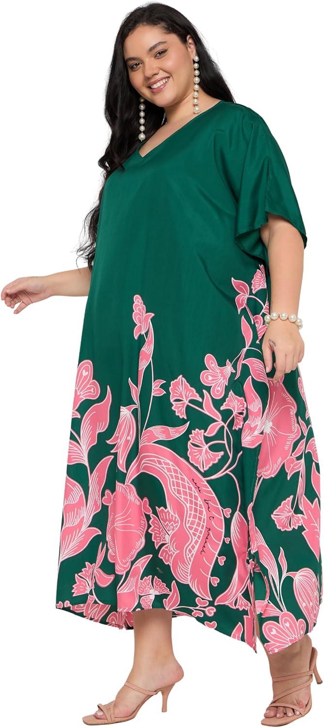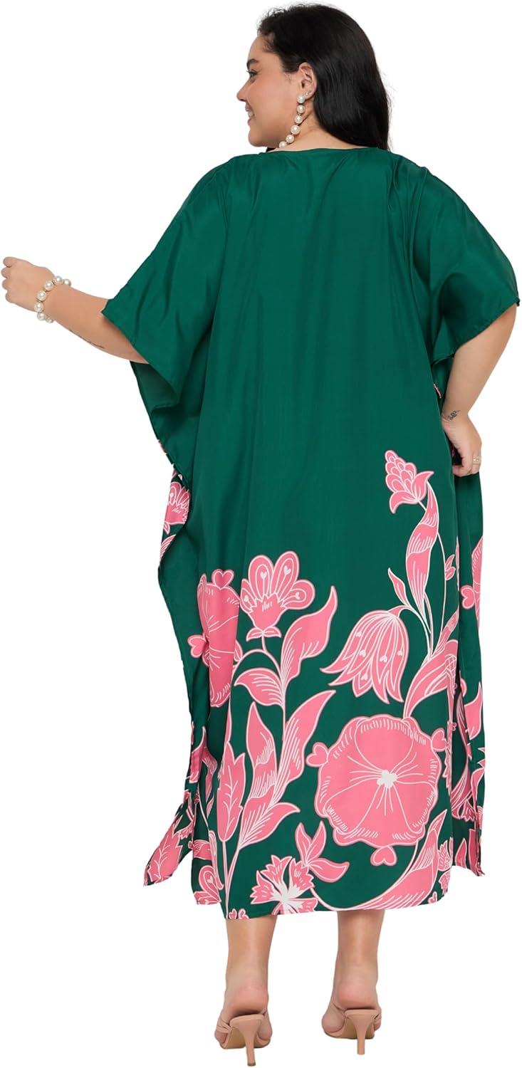 Gypsie Blu Caftan Dresses for Women Polyester Plus Size Moo Moos Bathing Suit Cover Up Kaftan BeachDress Resort Lounge Outfit(Green Floral)