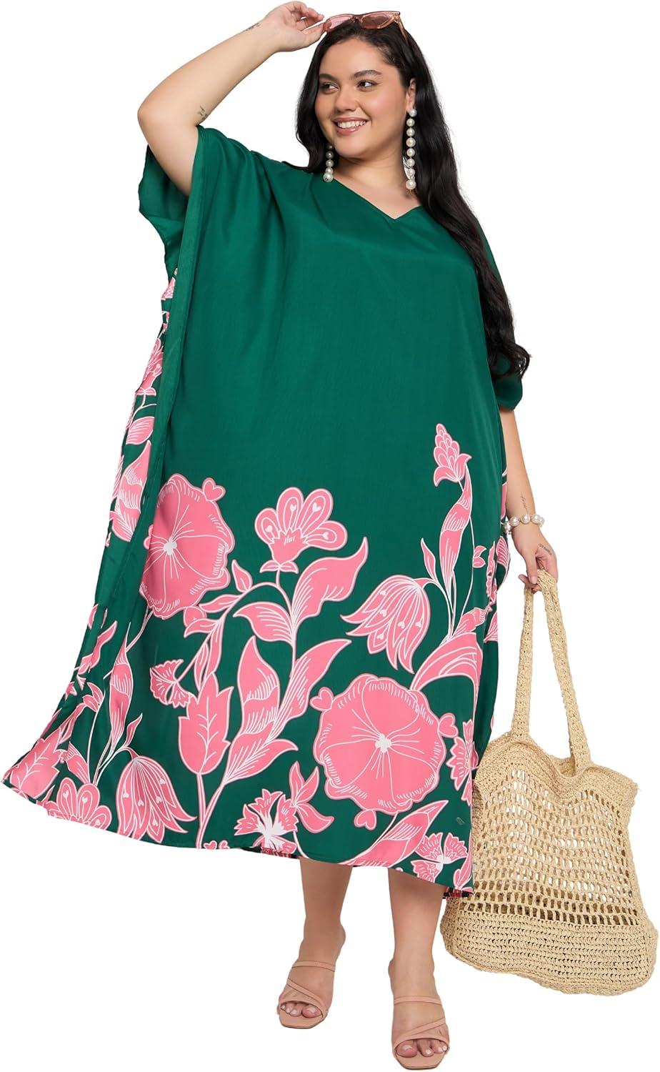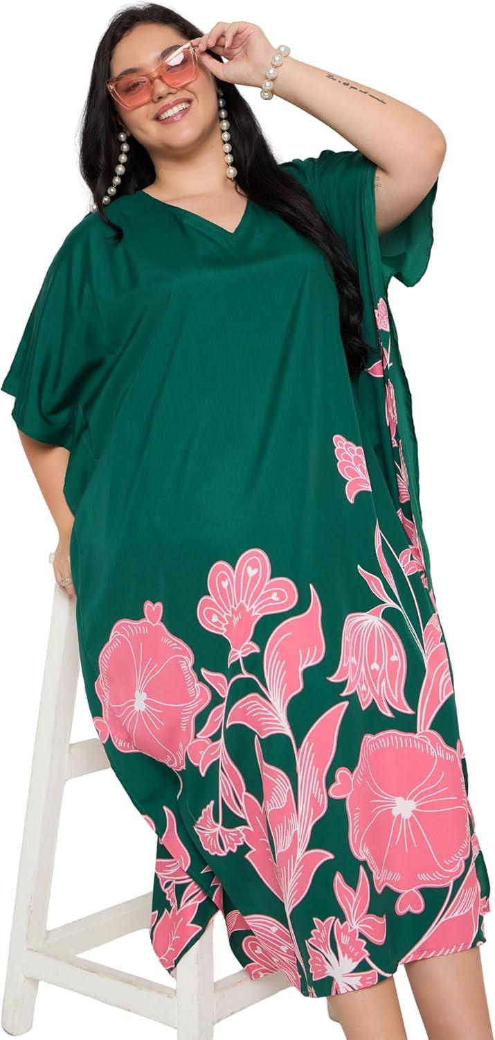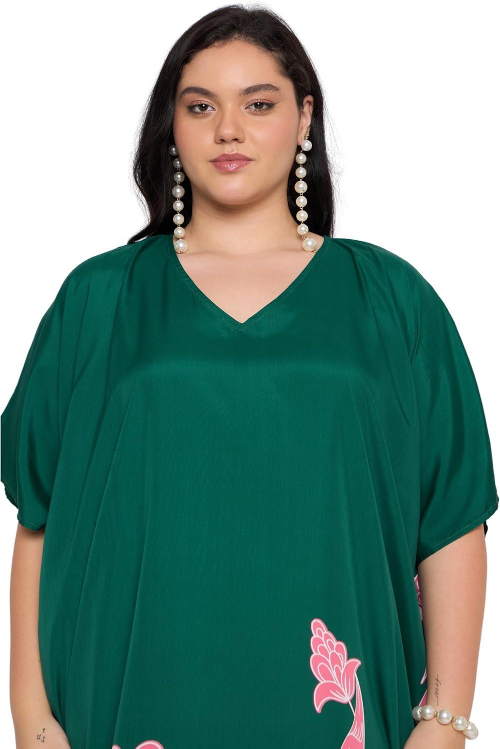Gypsie Blu Caftan Dresses for Women Polyester Plus Size Moo Moos Bathing Suit Cover Up Kaftan BeachDress Resort Lounge Outfit(Green Floral)