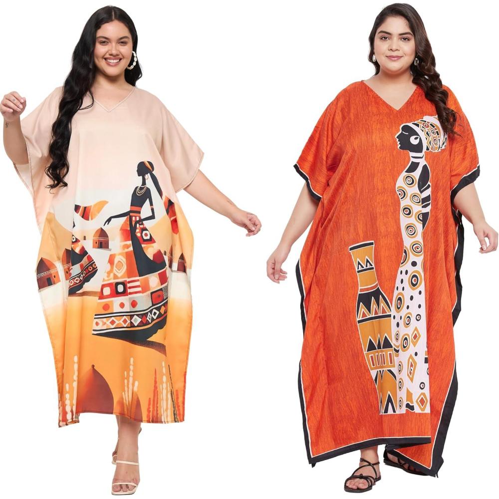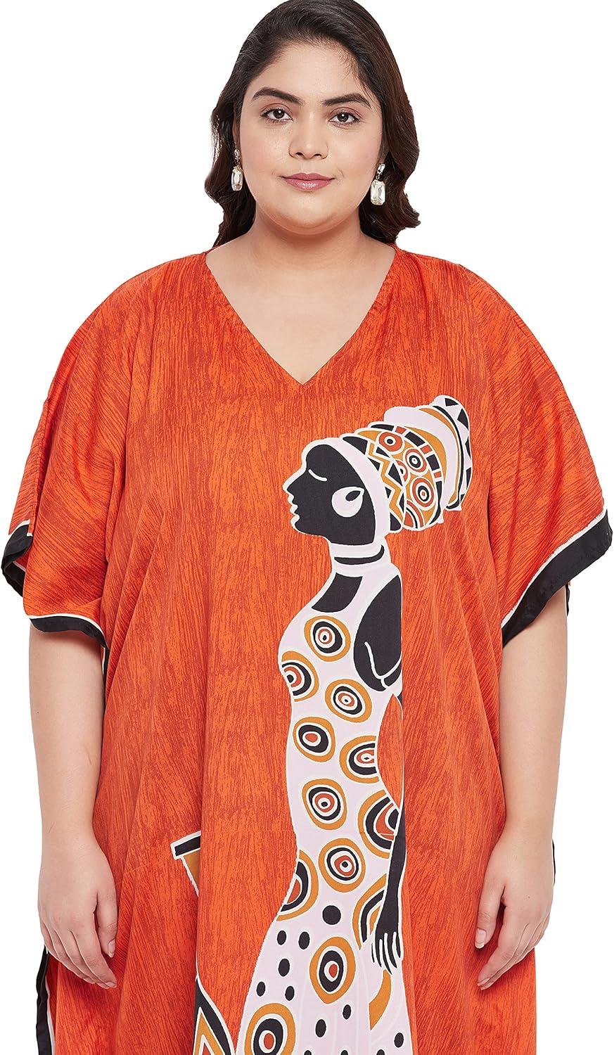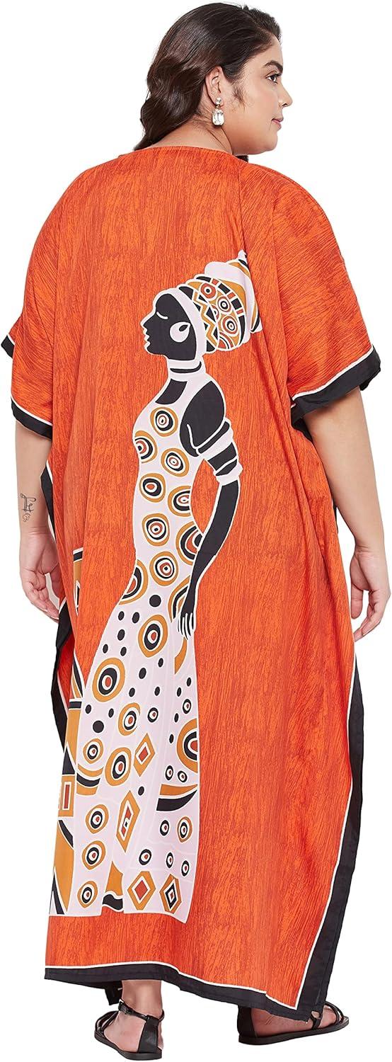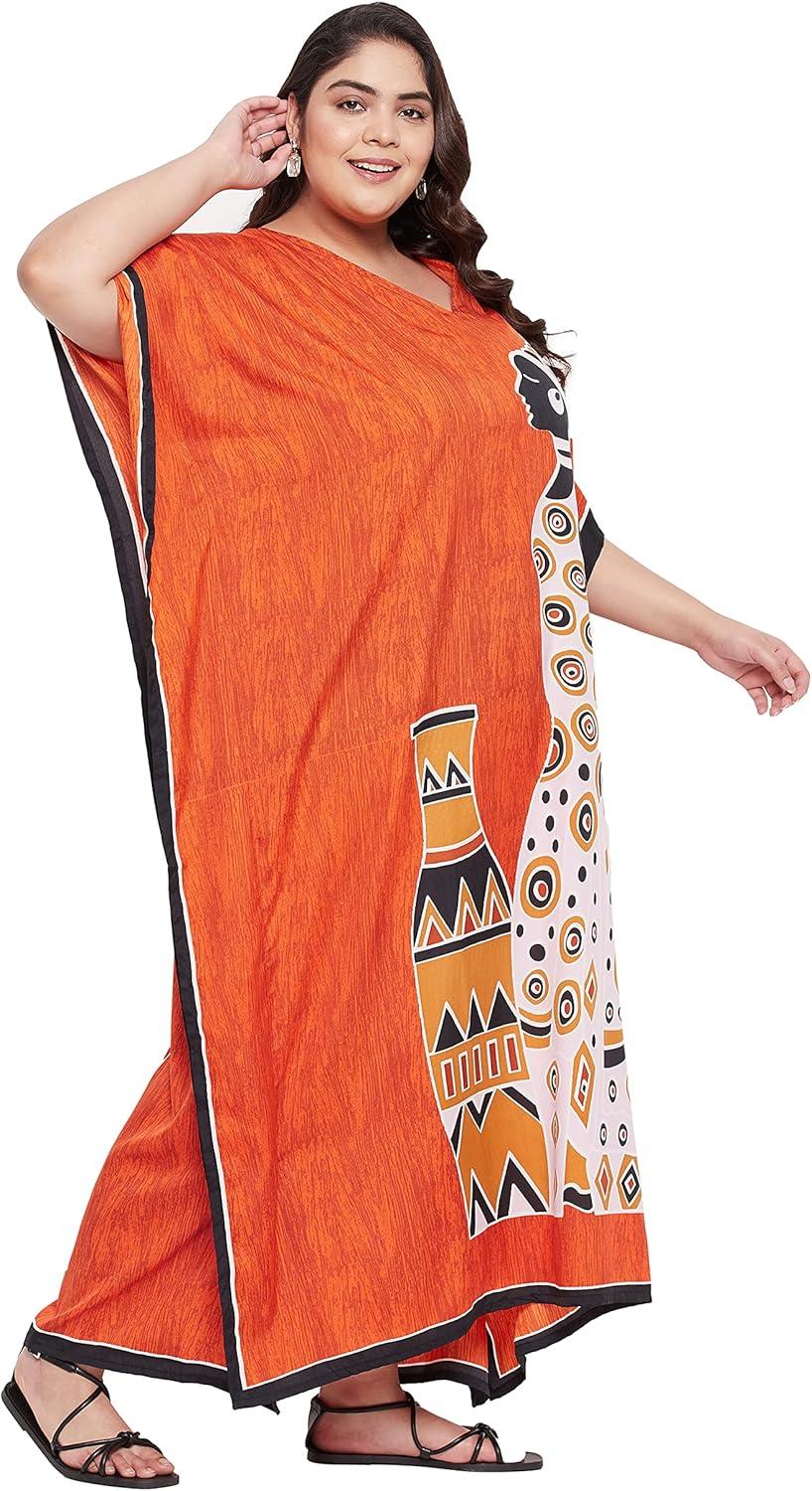 Our kaftan for women is made in high quality polyester fabric that feels luxurious and is ideal for casual as well as everyday wear. The lightweight polyester fabric is breathable and comfortable, making it an ideal choice for summer wear. It moves with your body for added comfort, whether you're lounging at home or attending a special event. This kaftan dress for women is high in style and low in price. Long printed kaftans are versatile and stylish wear for a beach day or a casual hangout. The casual caftan dress with intricate pattern gives a sophisticated finish along with 3/4 kimono sleeves with styled border design. Available in plus size kaftans are your way to a stylish wardrobe for your special occasions. Kaftan dress is the perfect wear for your daily wear as well as party wear. The timeless print on the kaftan is perfect party-wear to make you shine in glam. Wrinkle-Free Fabric: Forget about ironing! This kaftan is crafted with a special wrinkle-resistant fabric, ensuring it stays smooth and fresh-looking even after long wear or packing. Shrink-Free: Made from durable, high-performance polyester, this kaftan is designed to retain its size and shape after washing, so you never have to worry about it shrinking. A slight variation may occur in colors and size specifications.Colors may appear slightly different via website due to computer picture resolution and monitor settings as compared to the colors true to the pictures.